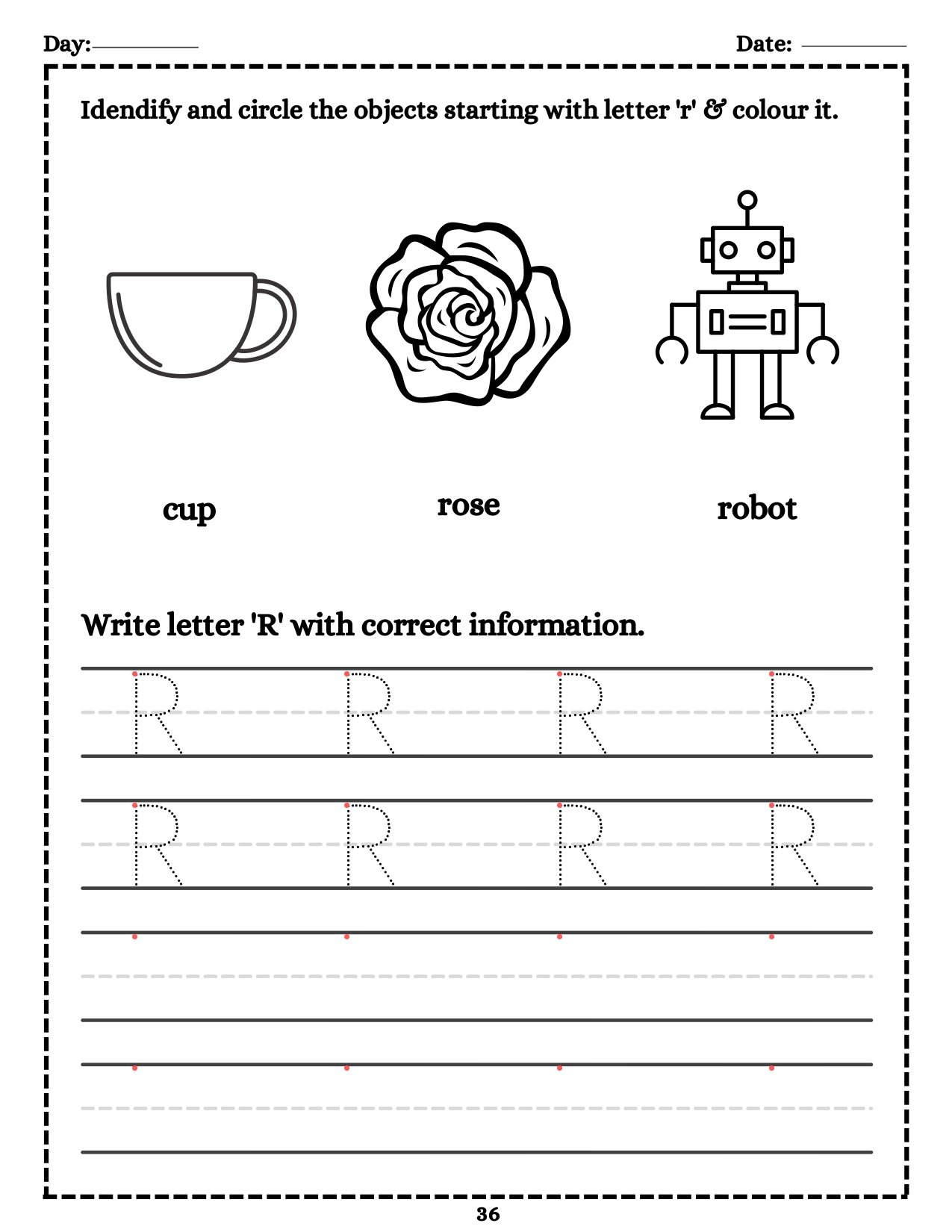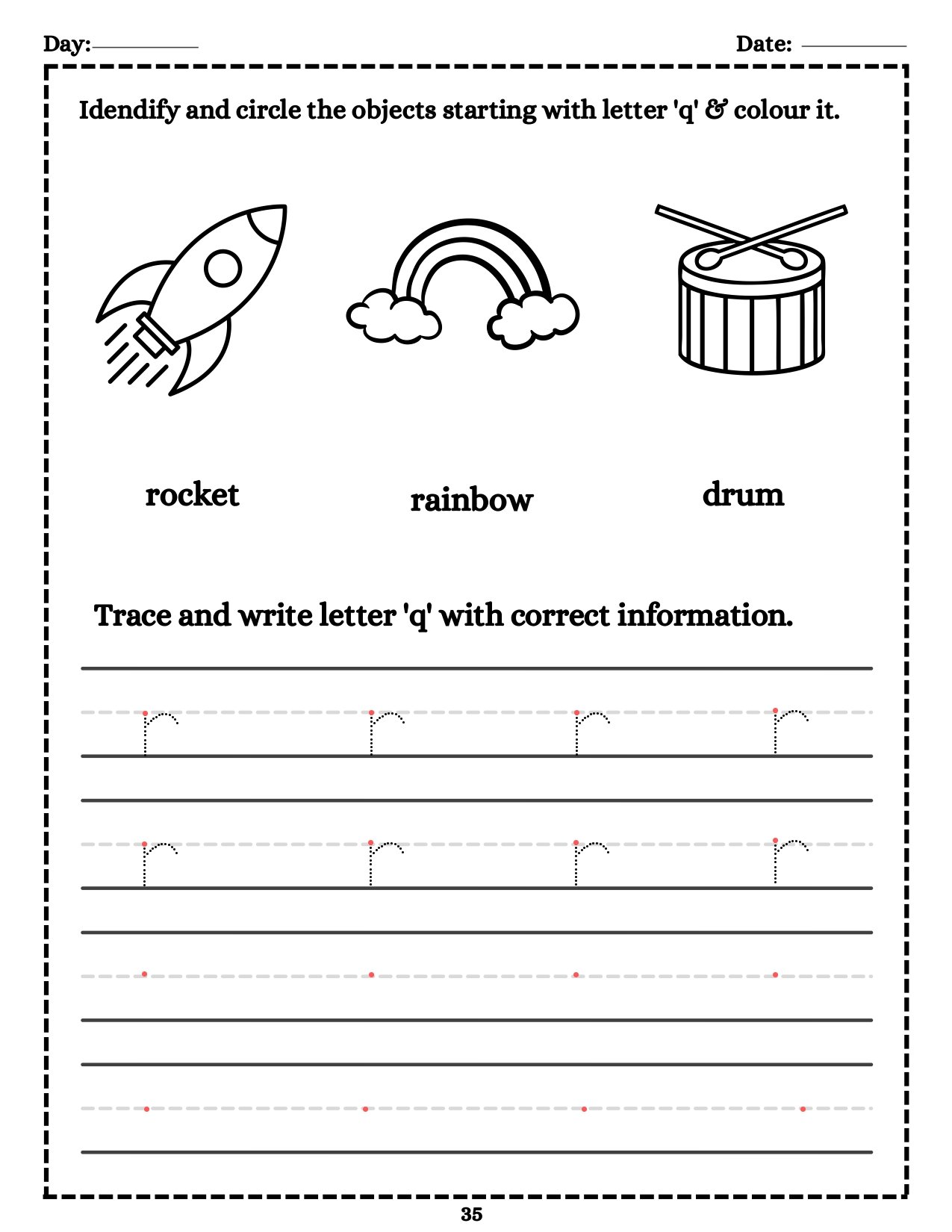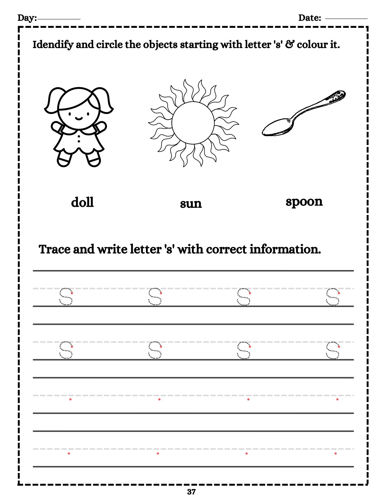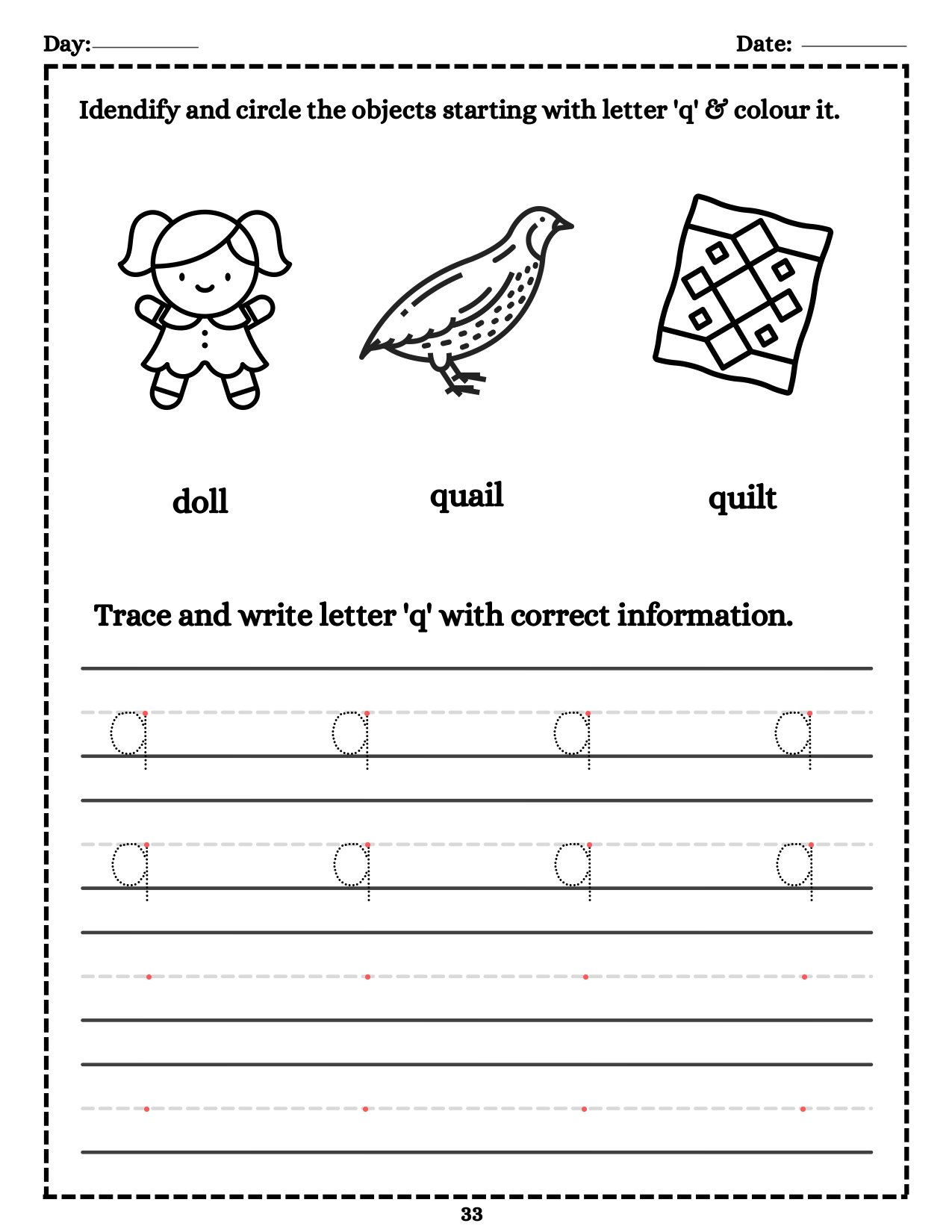 Każda strona została zaprojektowana tak, by rozwijać umiejętność pisania, rozpoznawania liter i pierwszego czytania.