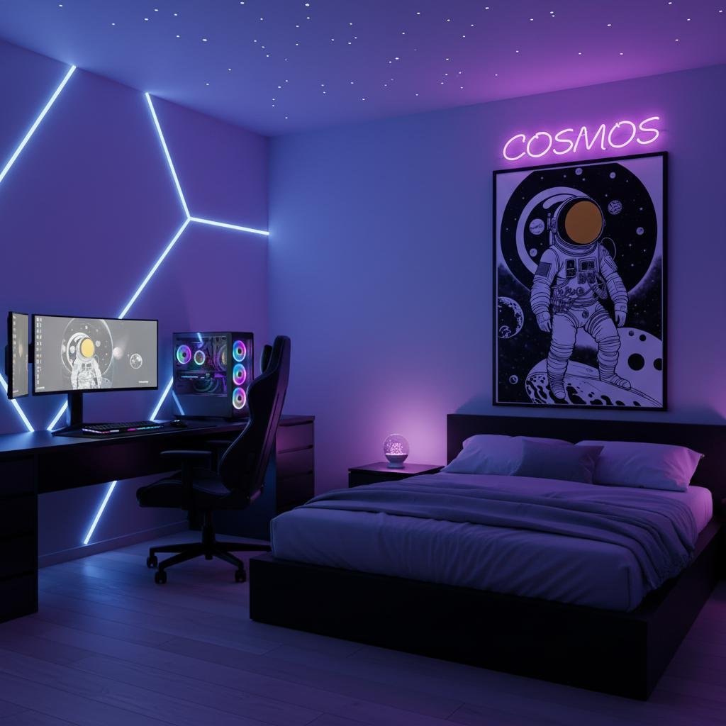 Idealny dla fanów sci-fi, nowoczesnych loftów i gamingowych klimatów.