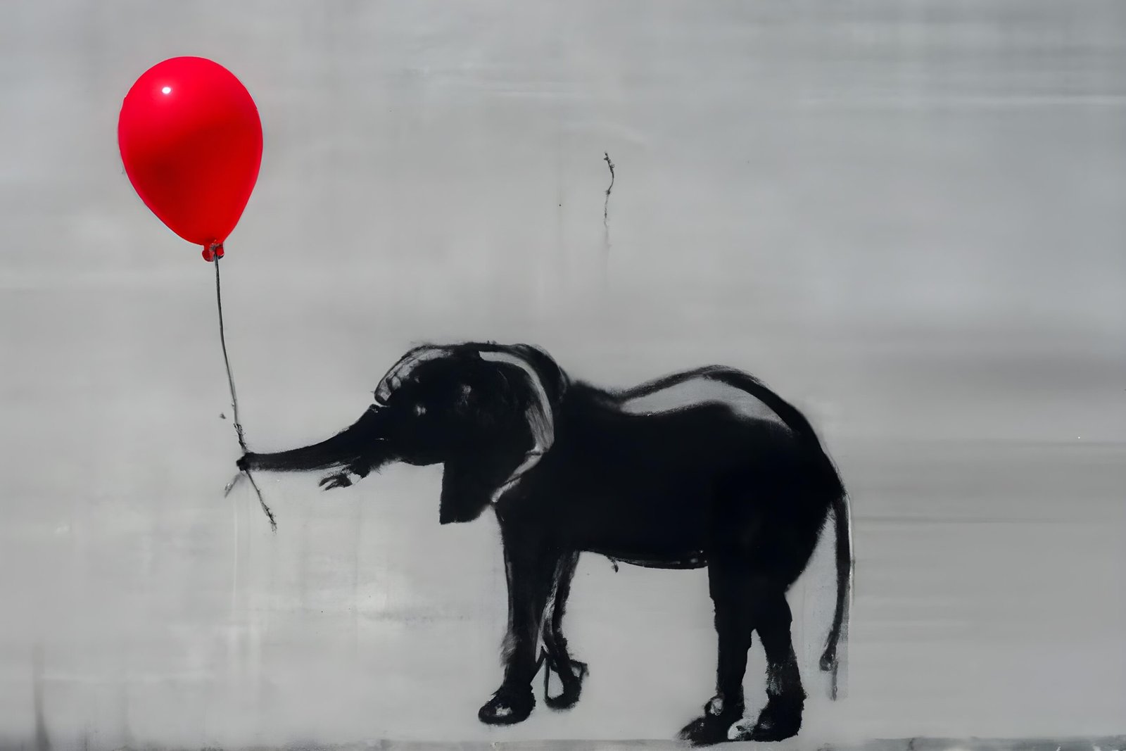 BANKSY STYLE — Słoń z Czerwonym Balonem | Street Art Graffiti Poster