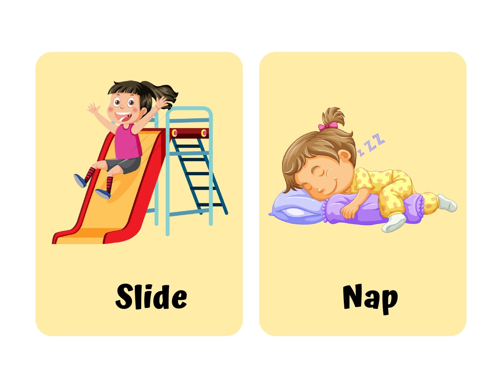 Każda karta łączy prosty obrazek z angielskim słowem, pomagając zapamiętać nowe wyrazy poprzez zabawę i skojarzenia.