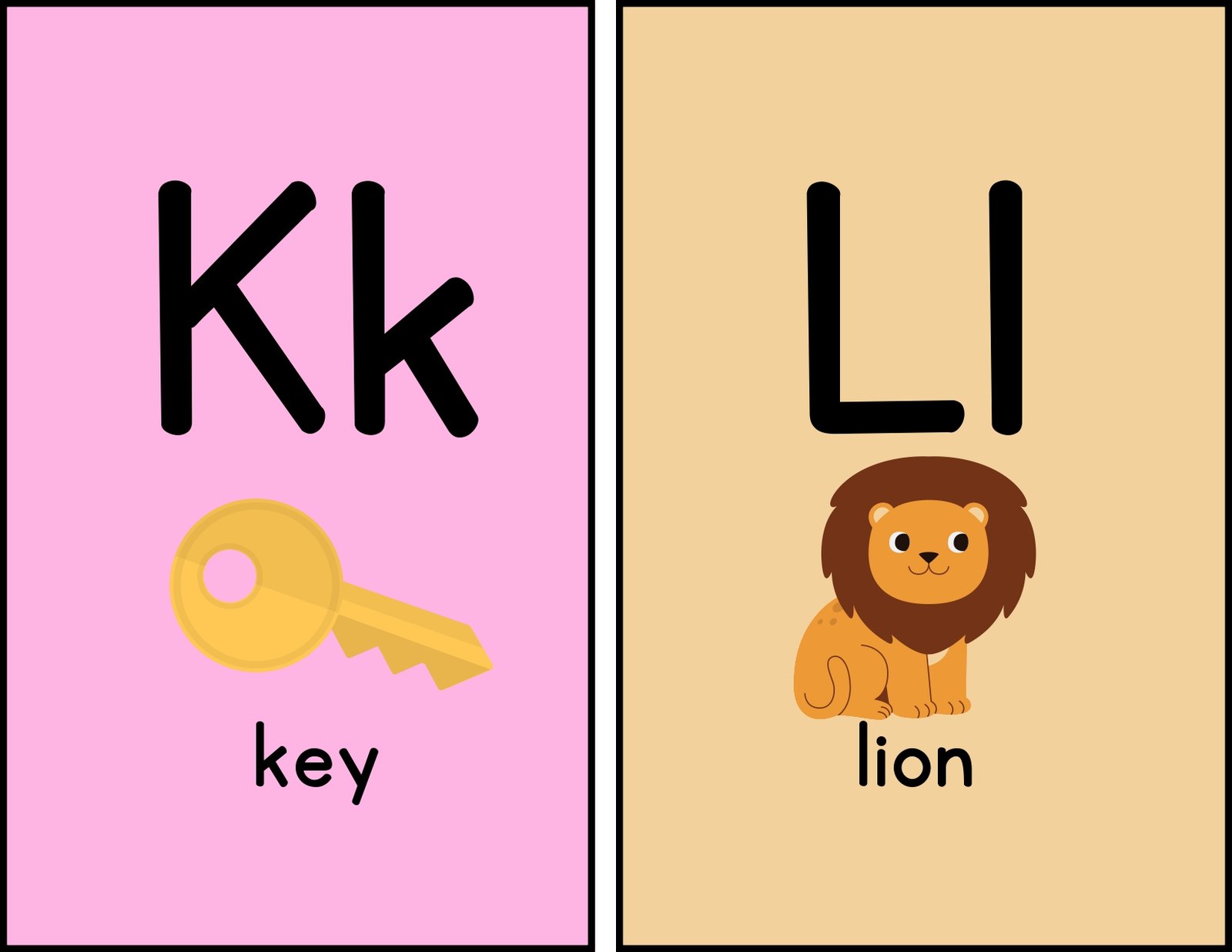 Każda fiszka ma czytelny układ i duże litery – idealne dla dzieci w wieku 3–7 lat.