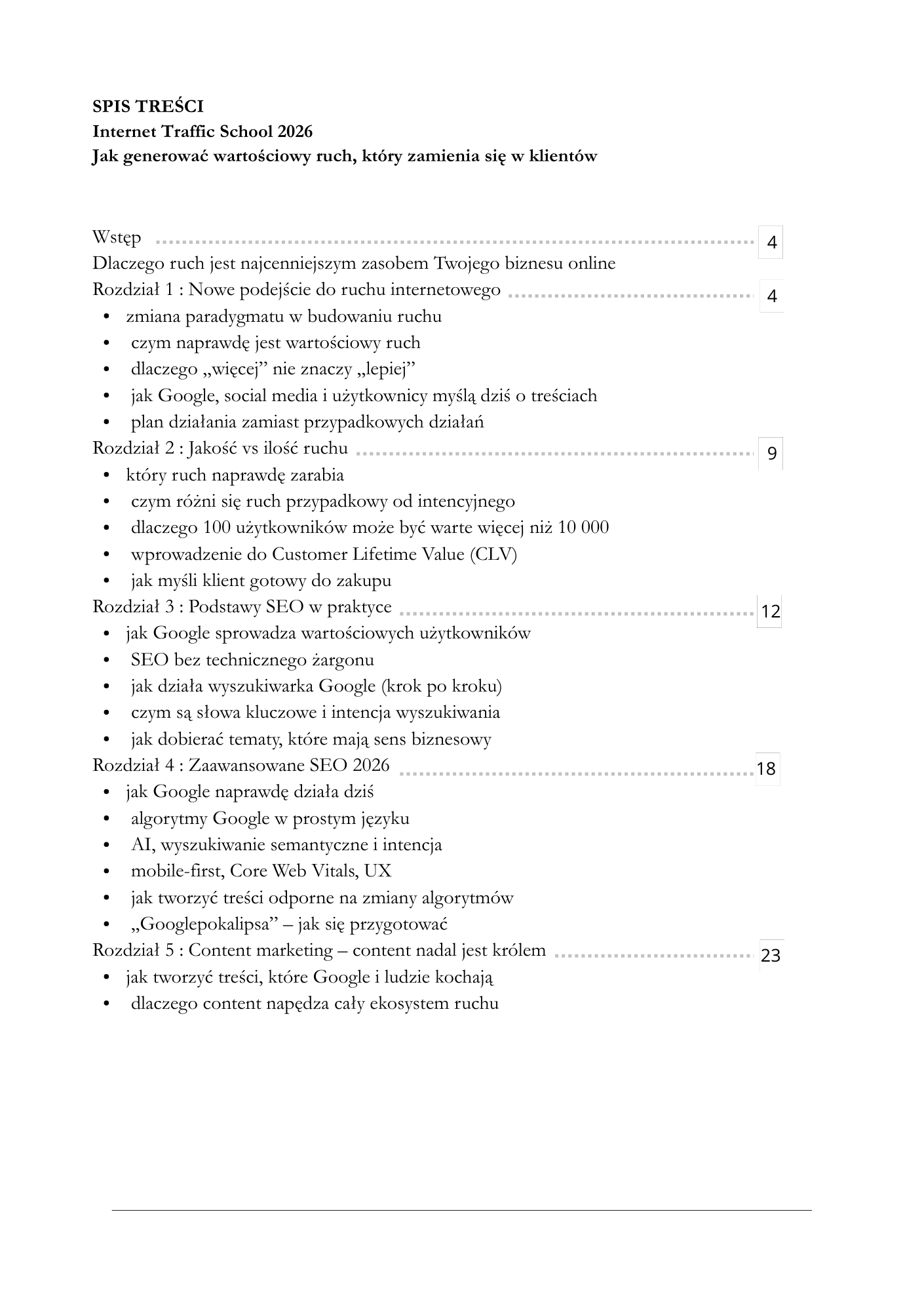 Internet Traffic School (2026) – jak generować ruch na stronę internetową, to praktyczny mini-kurs w formie e-booka premium, który prowadzi Cię krok po kroku od absolutnych podstaw do realnych efektów.