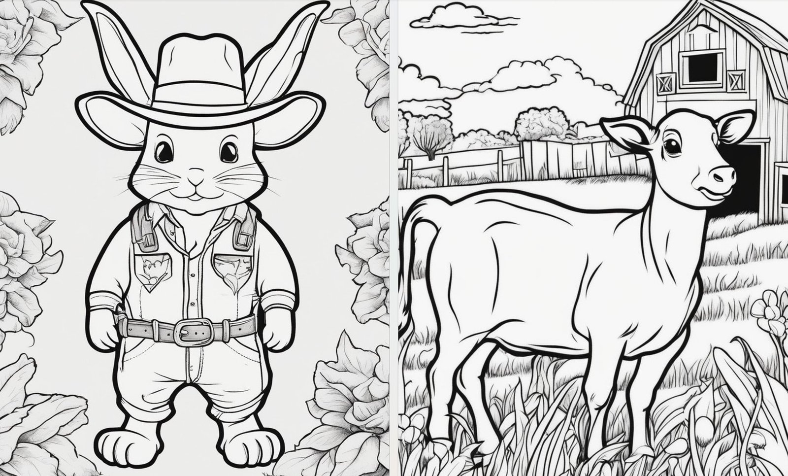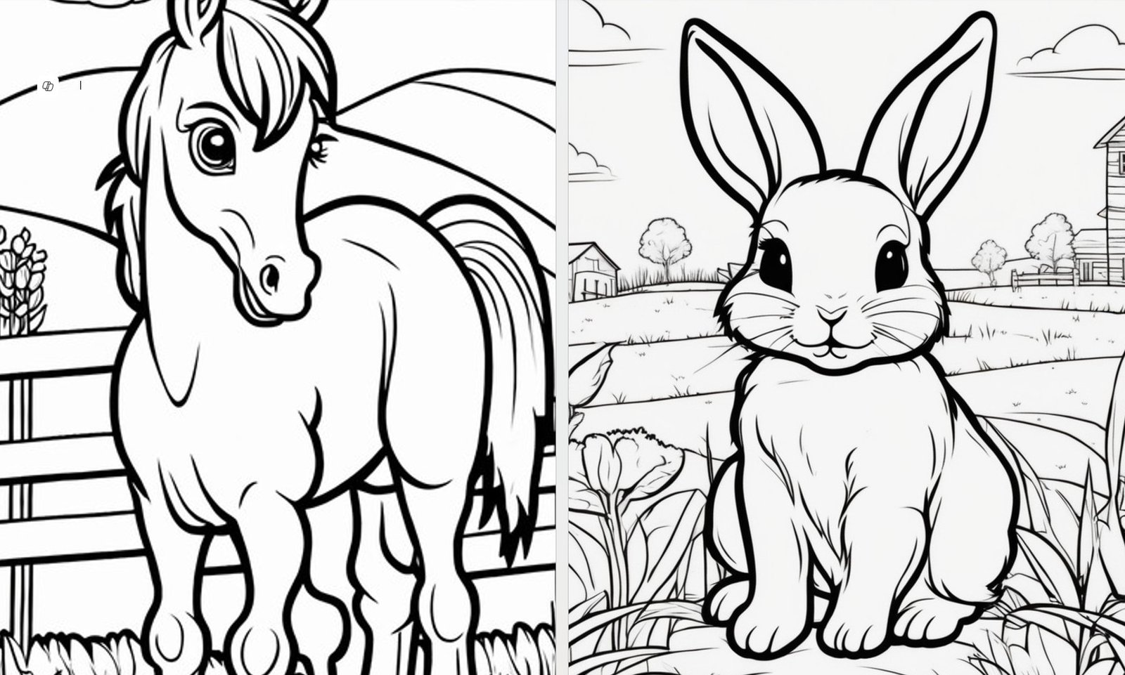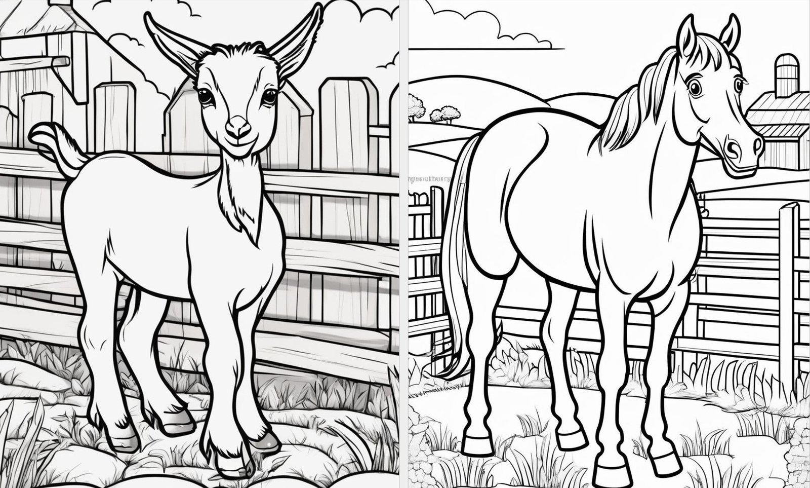 Ta pełna uroku kolekcja ilustracji przedstawia życie na farmie – zwierzęta, traktor, stodołę, pola i codzienne prace rolników. Idealna zabawa dla dzieci, która uczy i rozwija kreatywność poprzez kolorowanie. 🎨