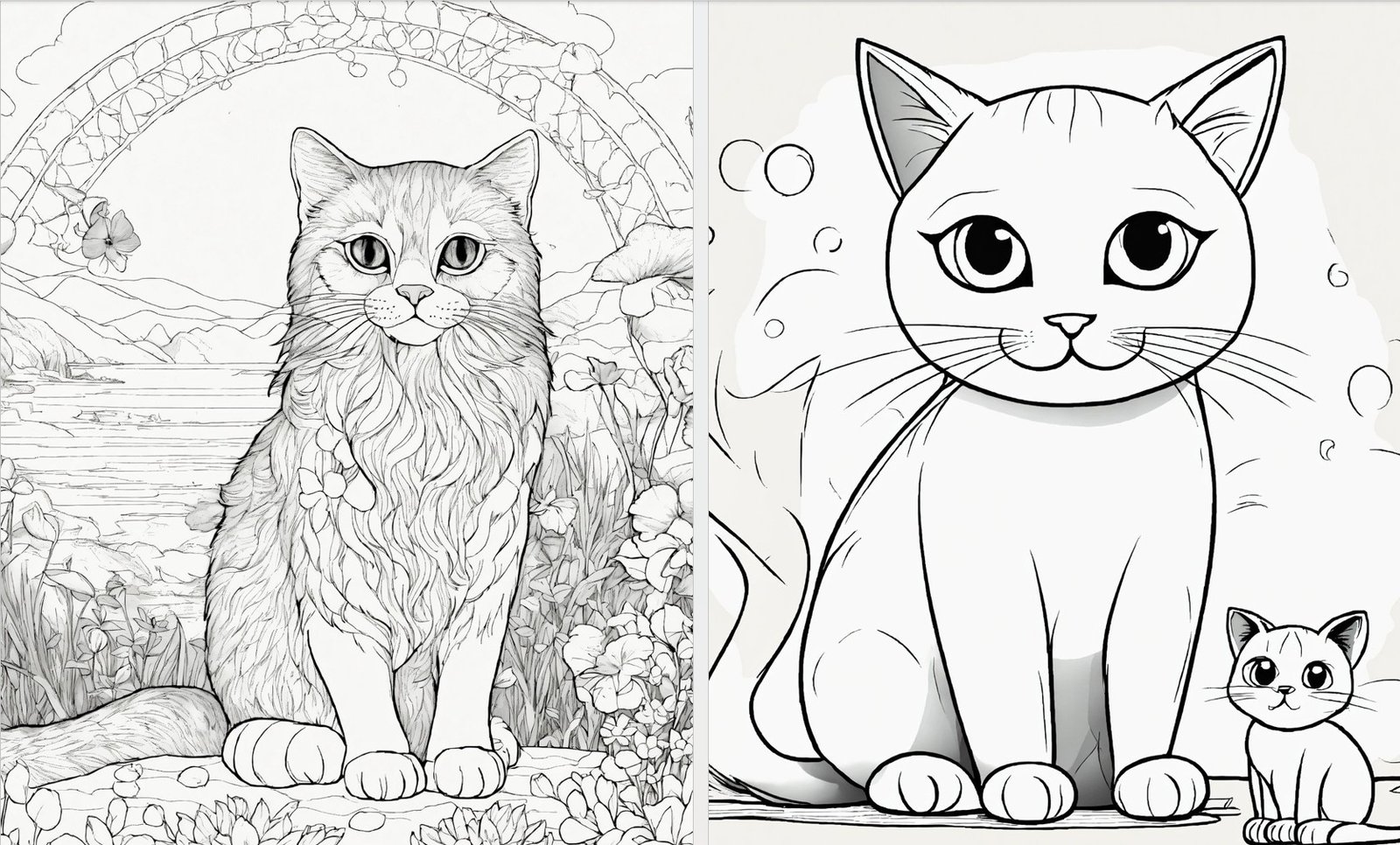 Różnorodne ilustracje kotków – od prostych po bardziej szczegółowe
