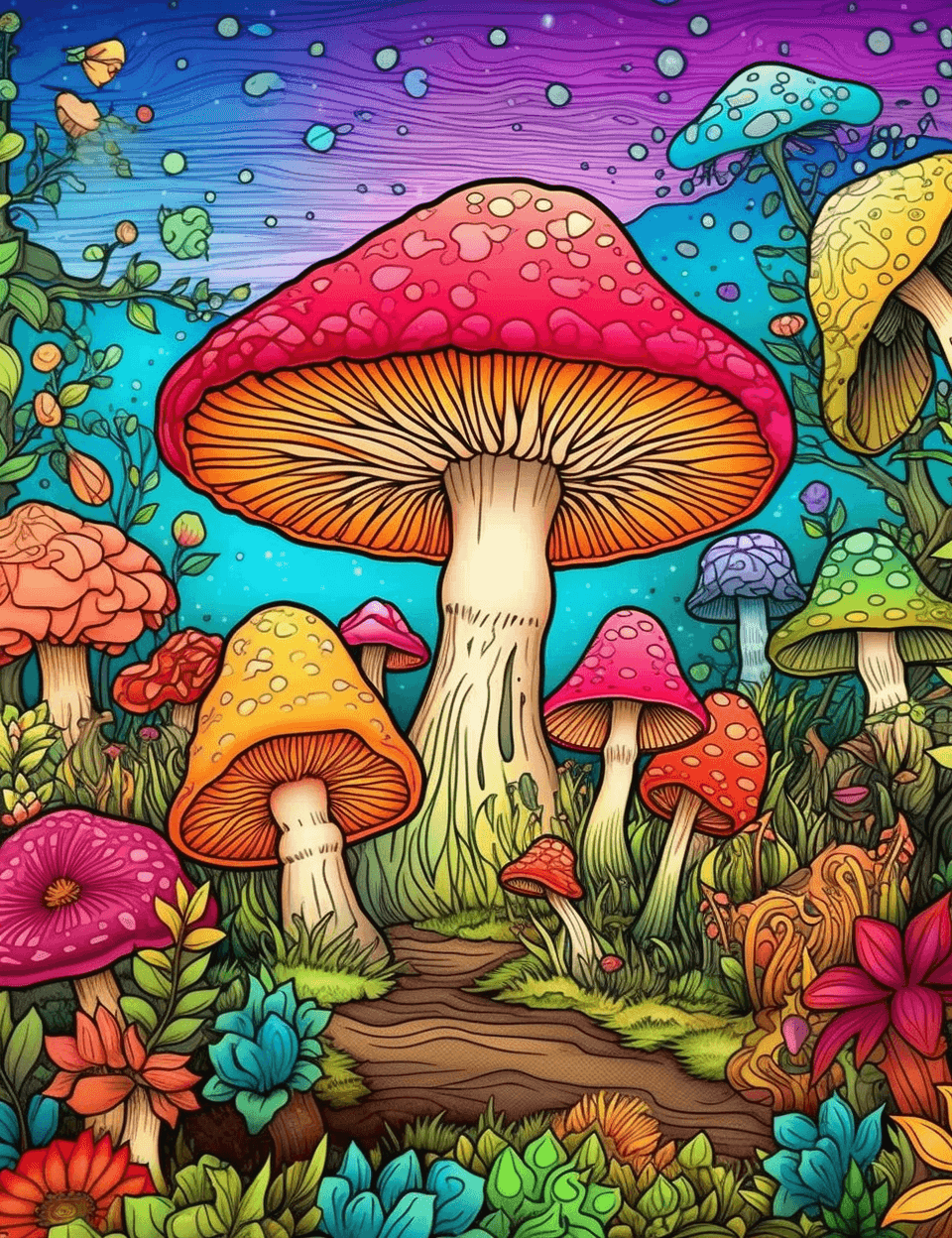 Przenieś się do bajkowego świata natury z naszą Kolorowanką dla Dorosłych – Magiczny Świat Grzybów 🌿
