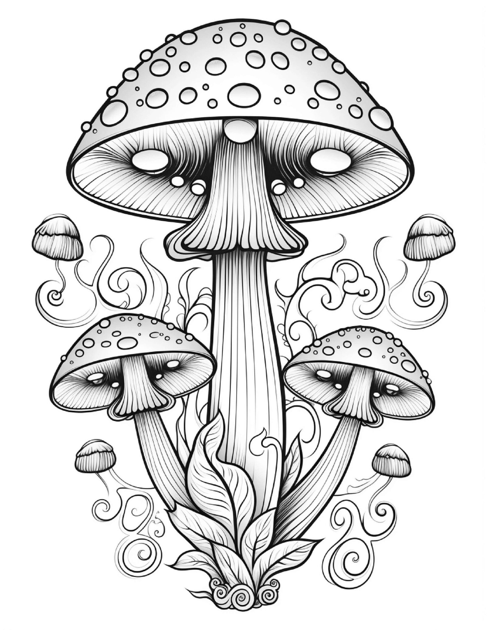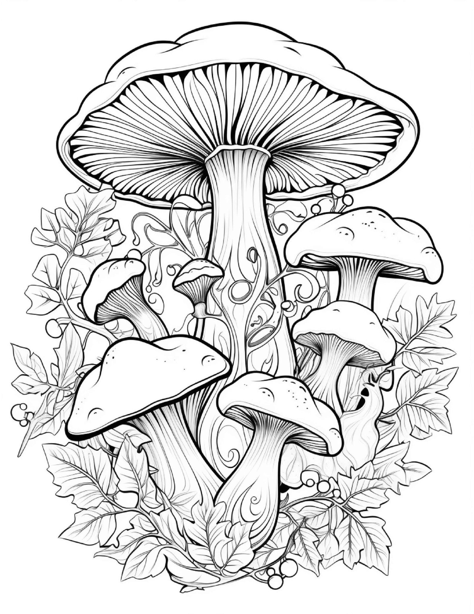 Kupując tę kolorowankę, otrzymasz 10 pięknych ilustracji grzybów w kolorze – idealnych jako inspiracja, okładki, plakaty lub tapety do druku! 🌈