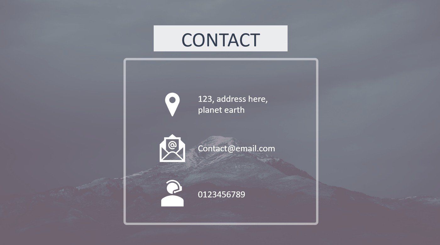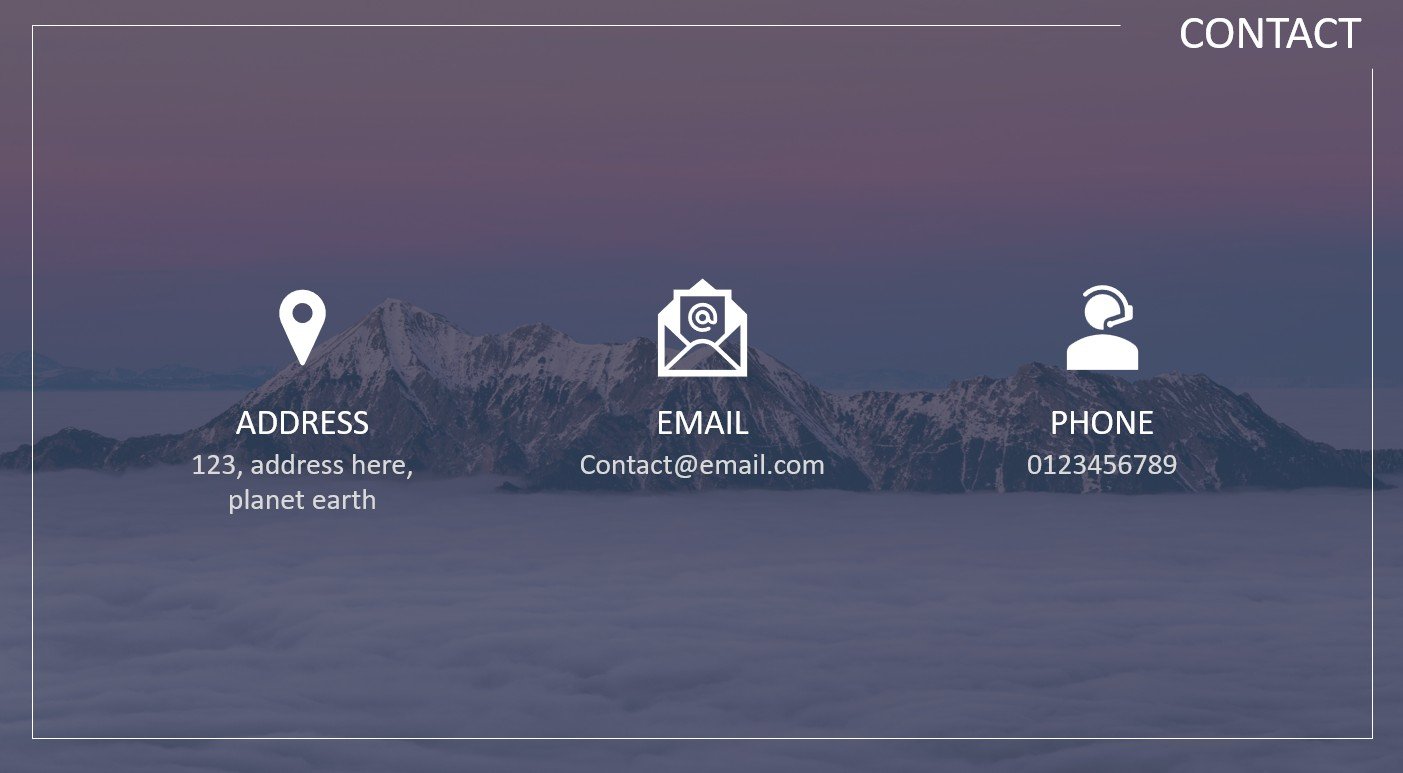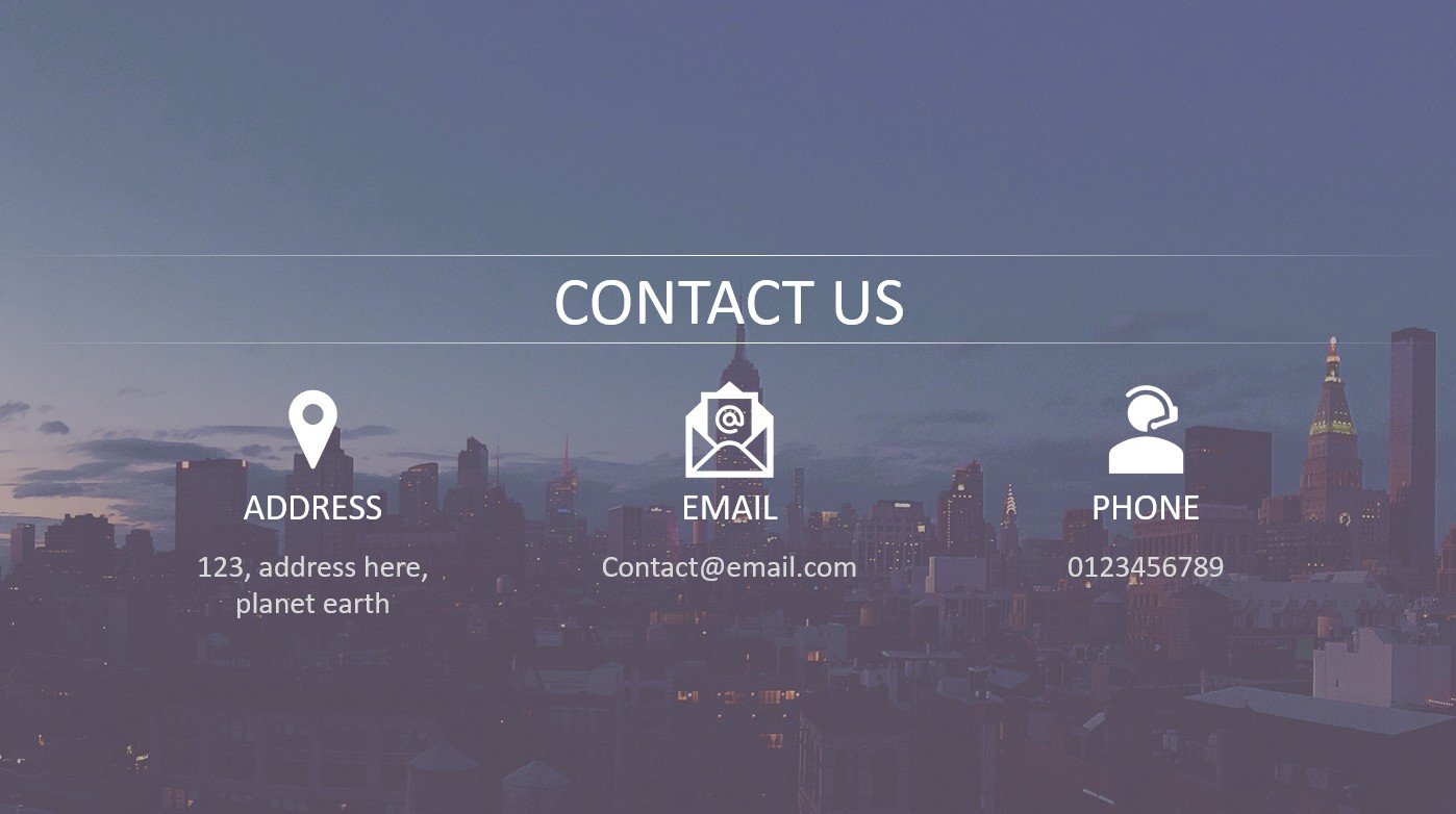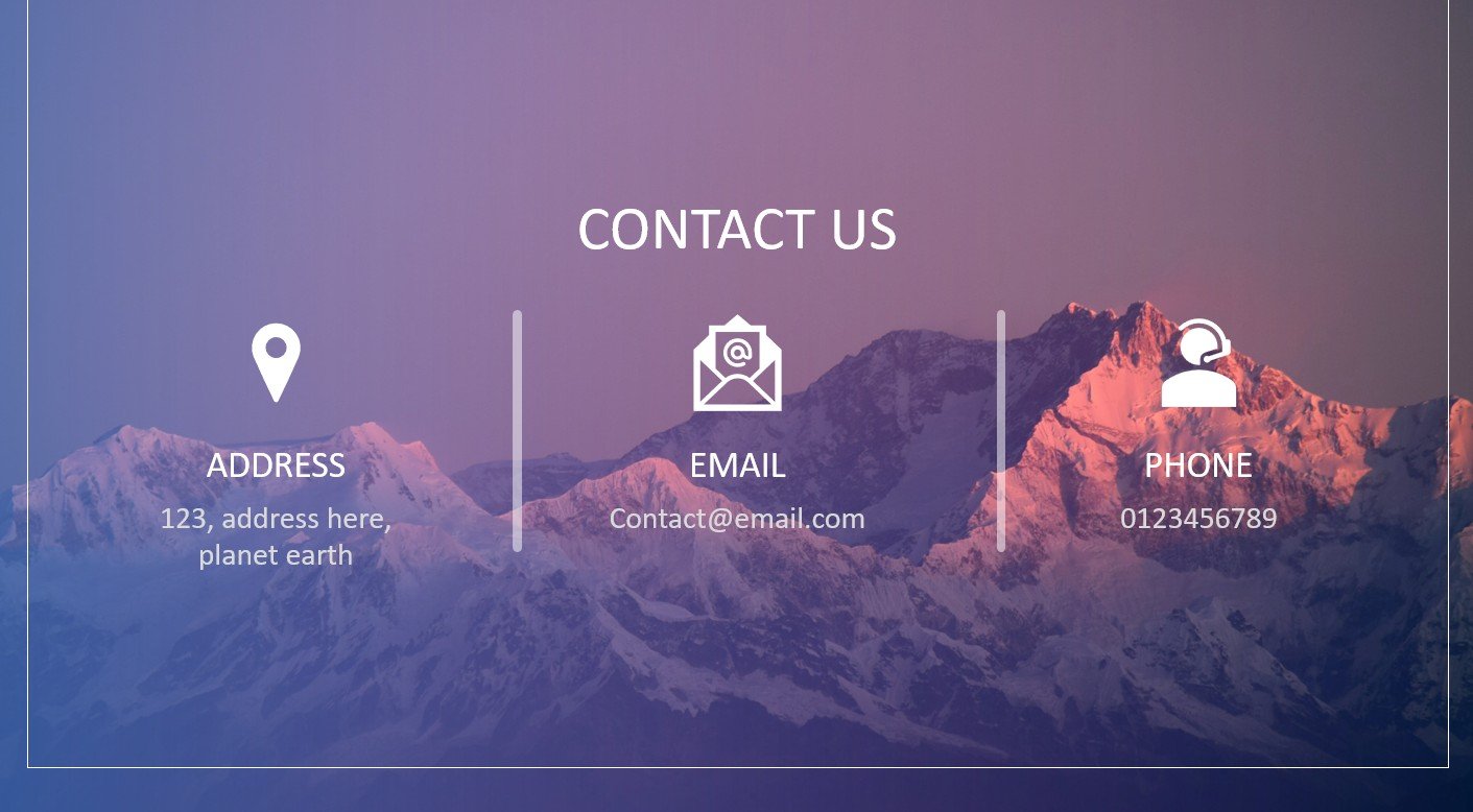 Sekcja „Contact Us” jest kluczowa w każdej prezentacji — to właśnie ona zachęca odbiorcę