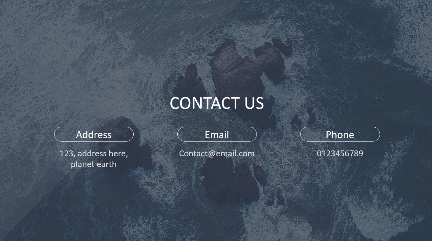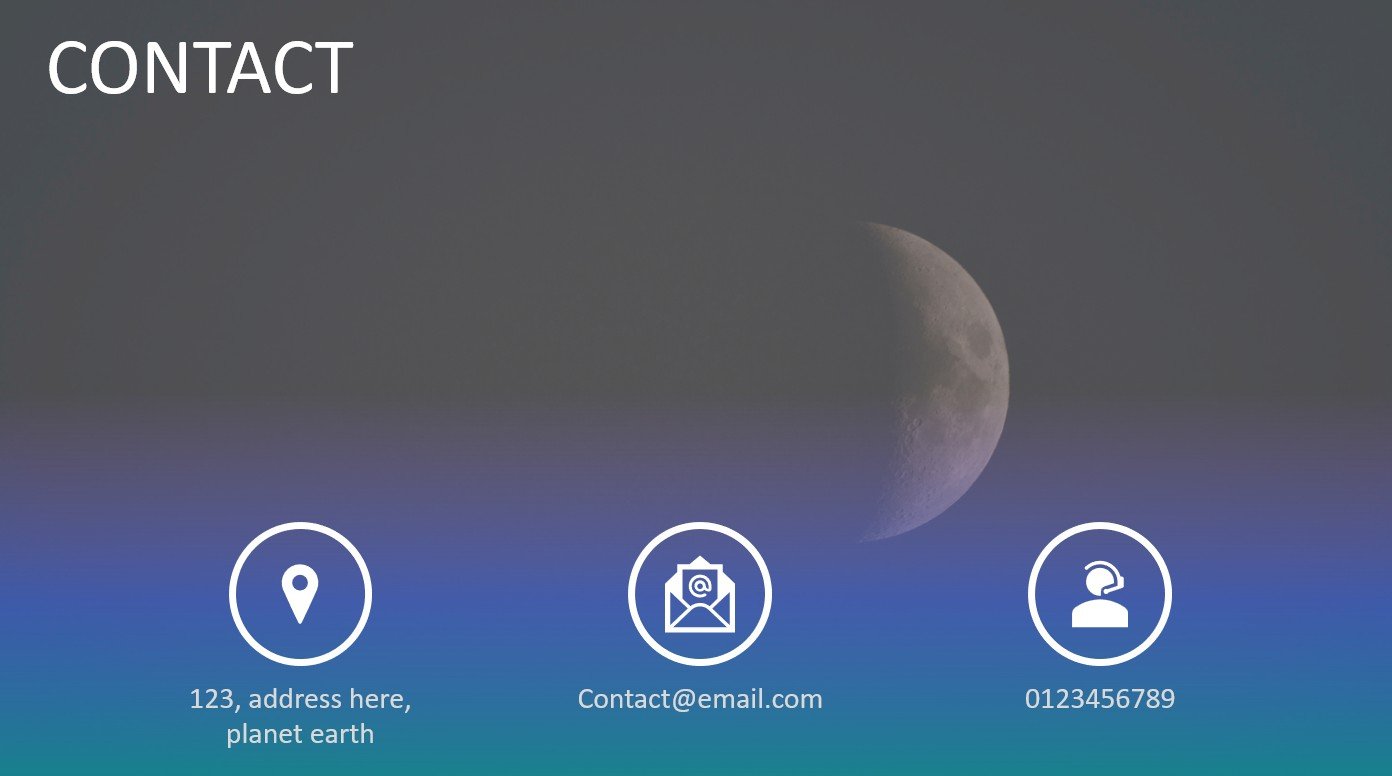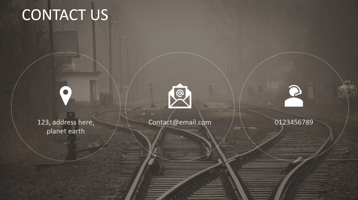 Sekcja „Contact Us” jest kluczowa w każdej prezentacji — to właśnie ona zachęca odbiorcę