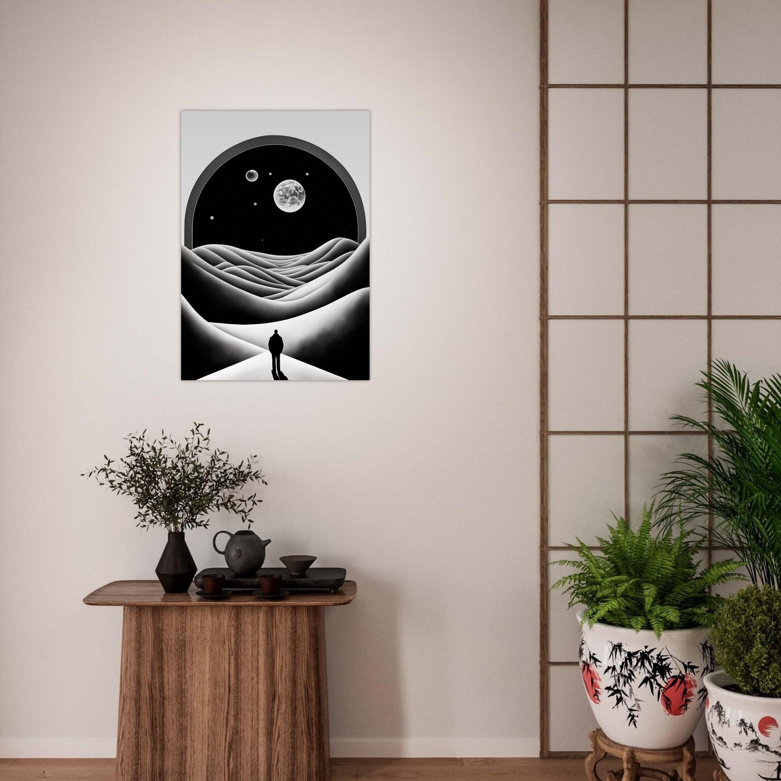 Kosmiczny Horyzont-Ten plakat wprowadza do wnętrza atmosferę nieznanego — idealną do pracy twórczej, medytacji i wieczornego relaksu.