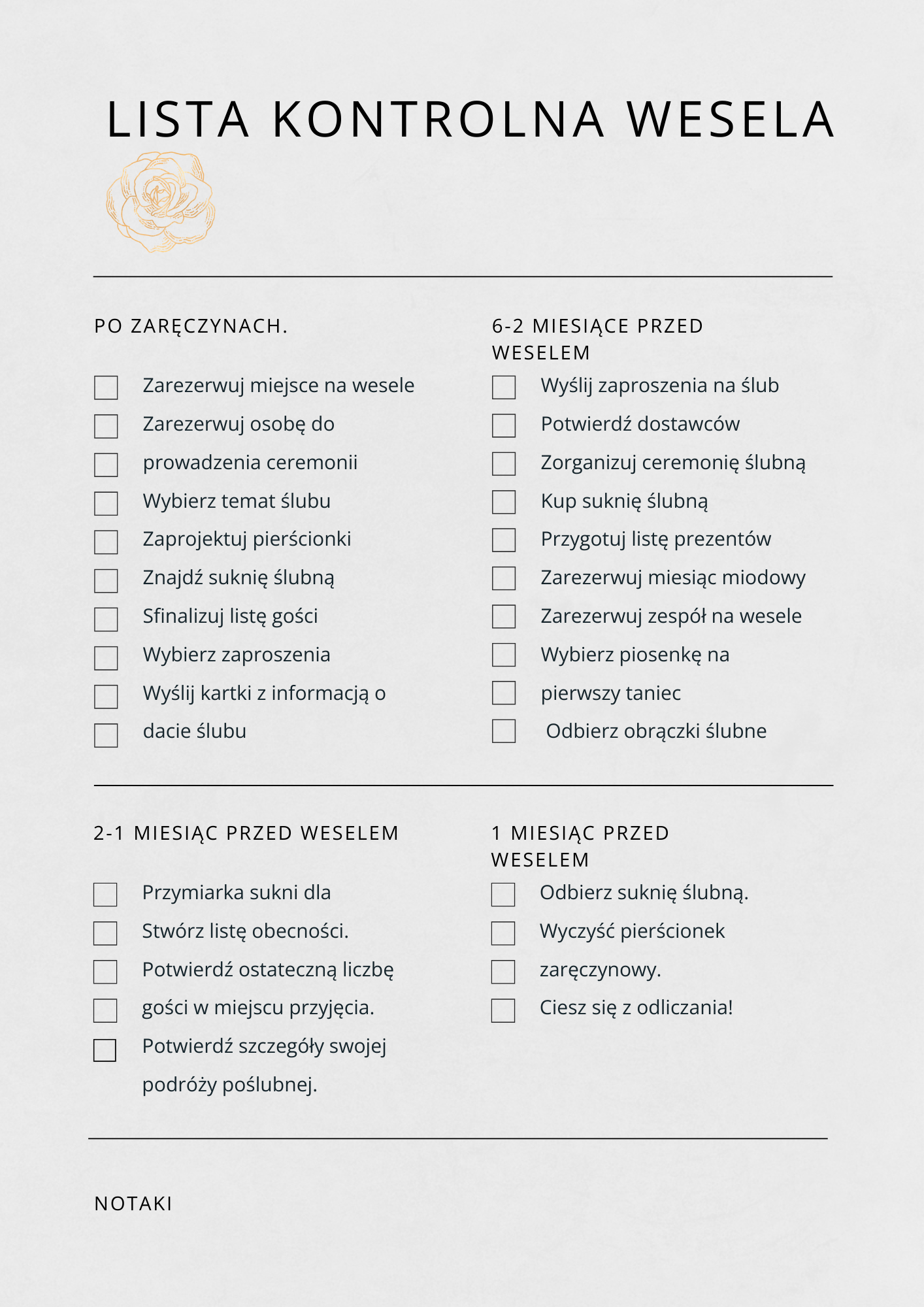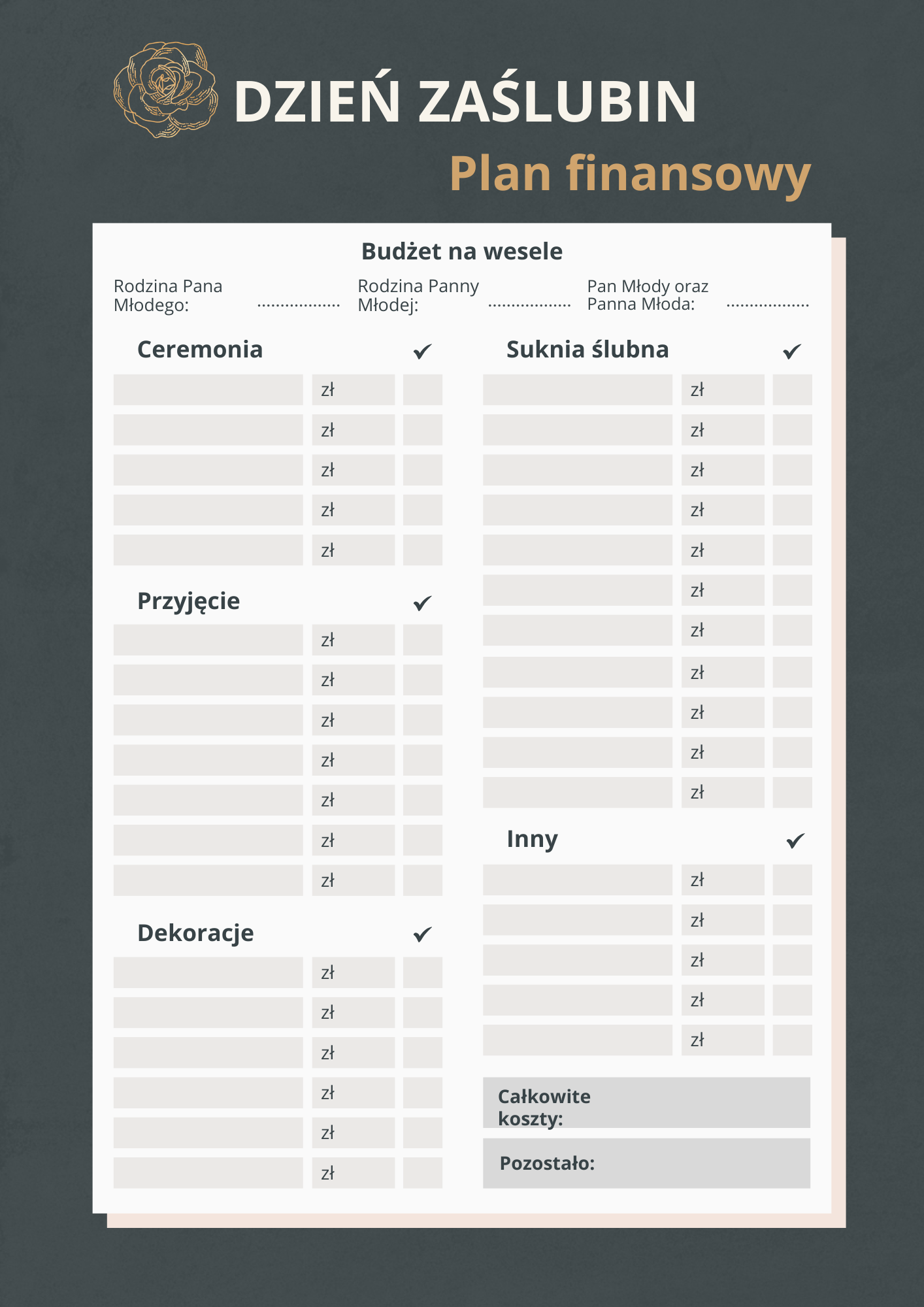Organizator Wesela – planner ślubny PDF do druku i wypełniania