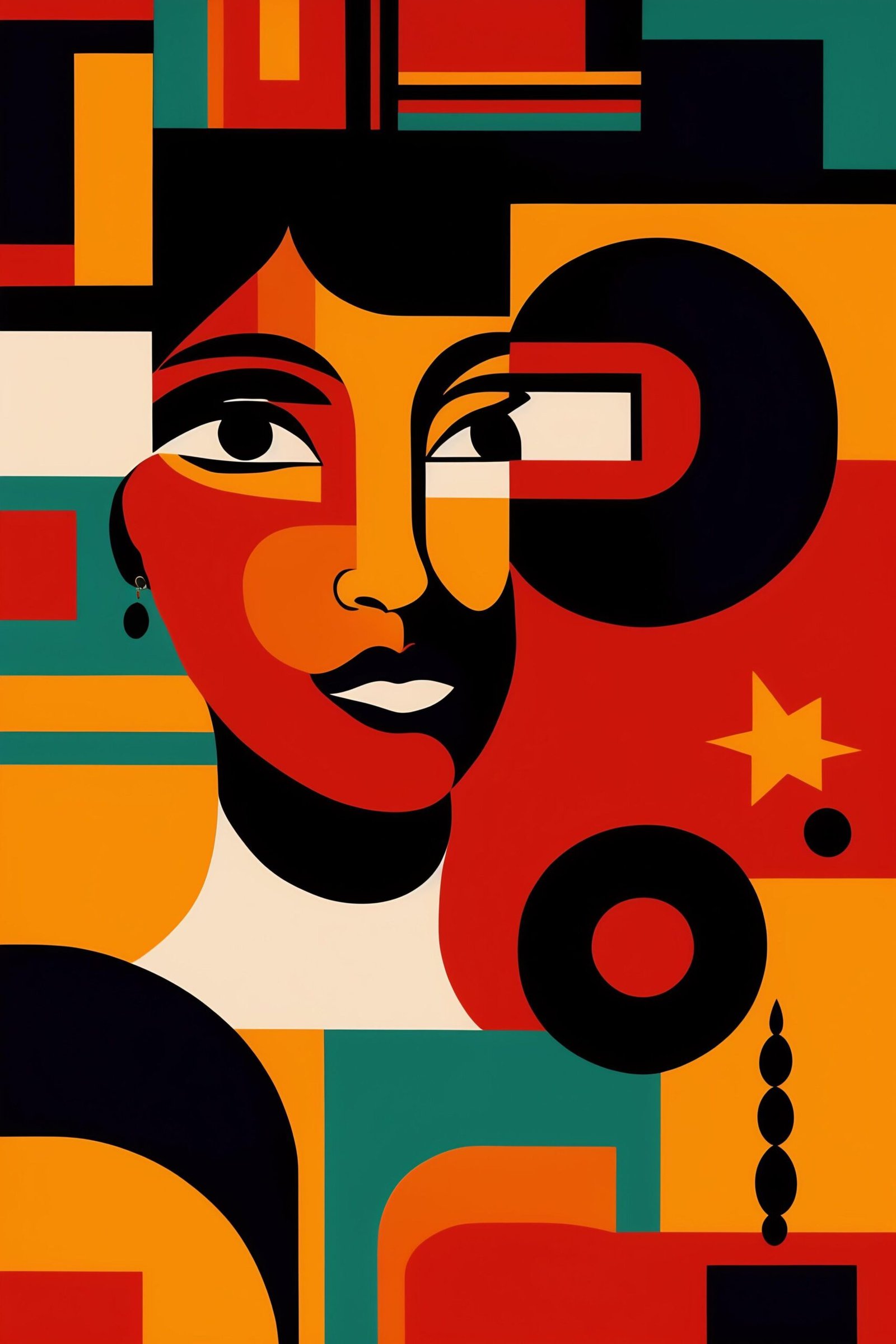 Abstrakcyjny Geometryczny Portret Kobiety | Modern Retro Cubism Art