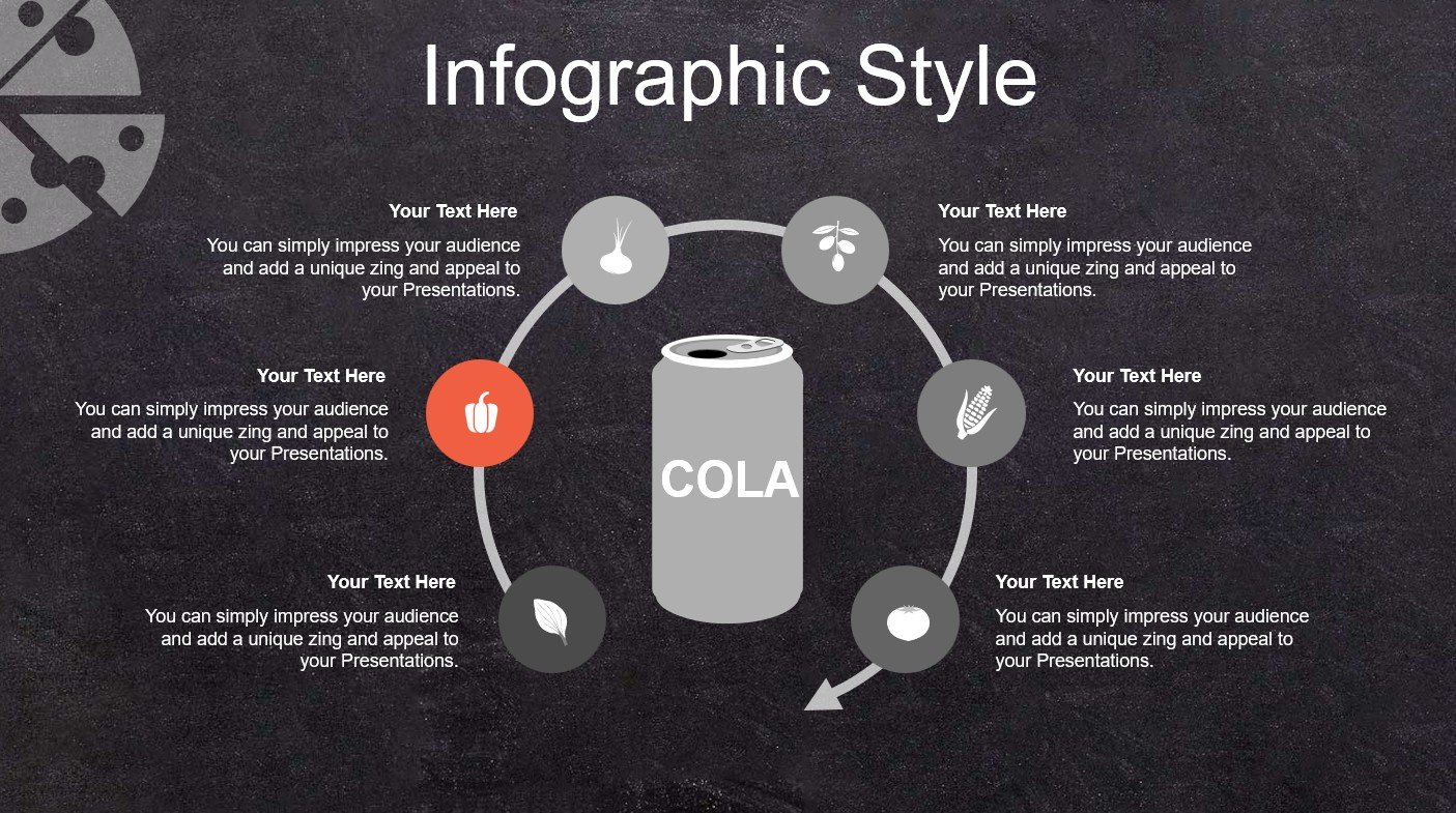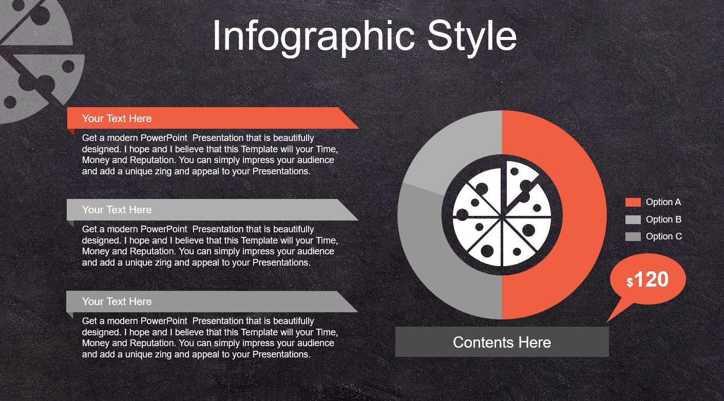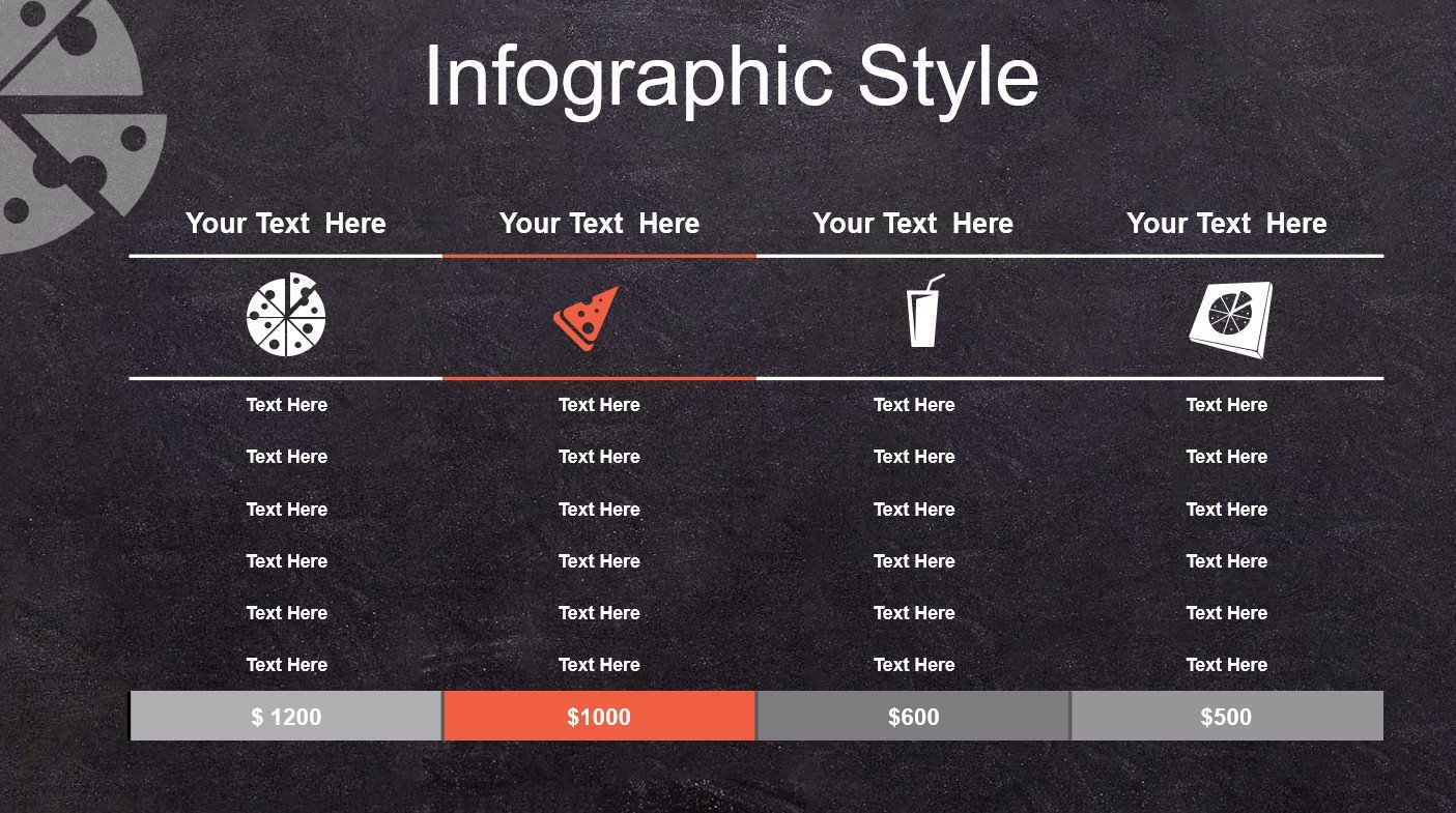 W pakiecie Pizza Restaurant znajdują się również slajdy wspierające sprzedaż: statystyki, porównania,