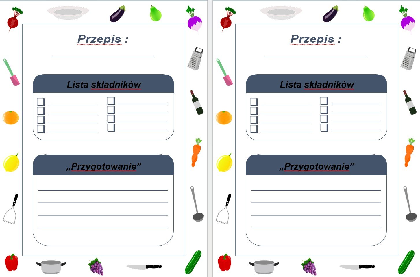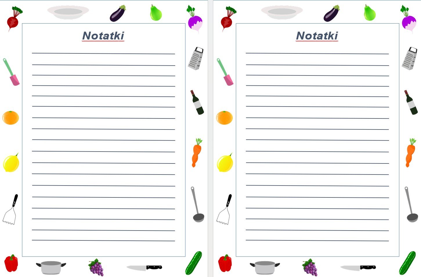 Strony do zapisywania własnych przepisów,