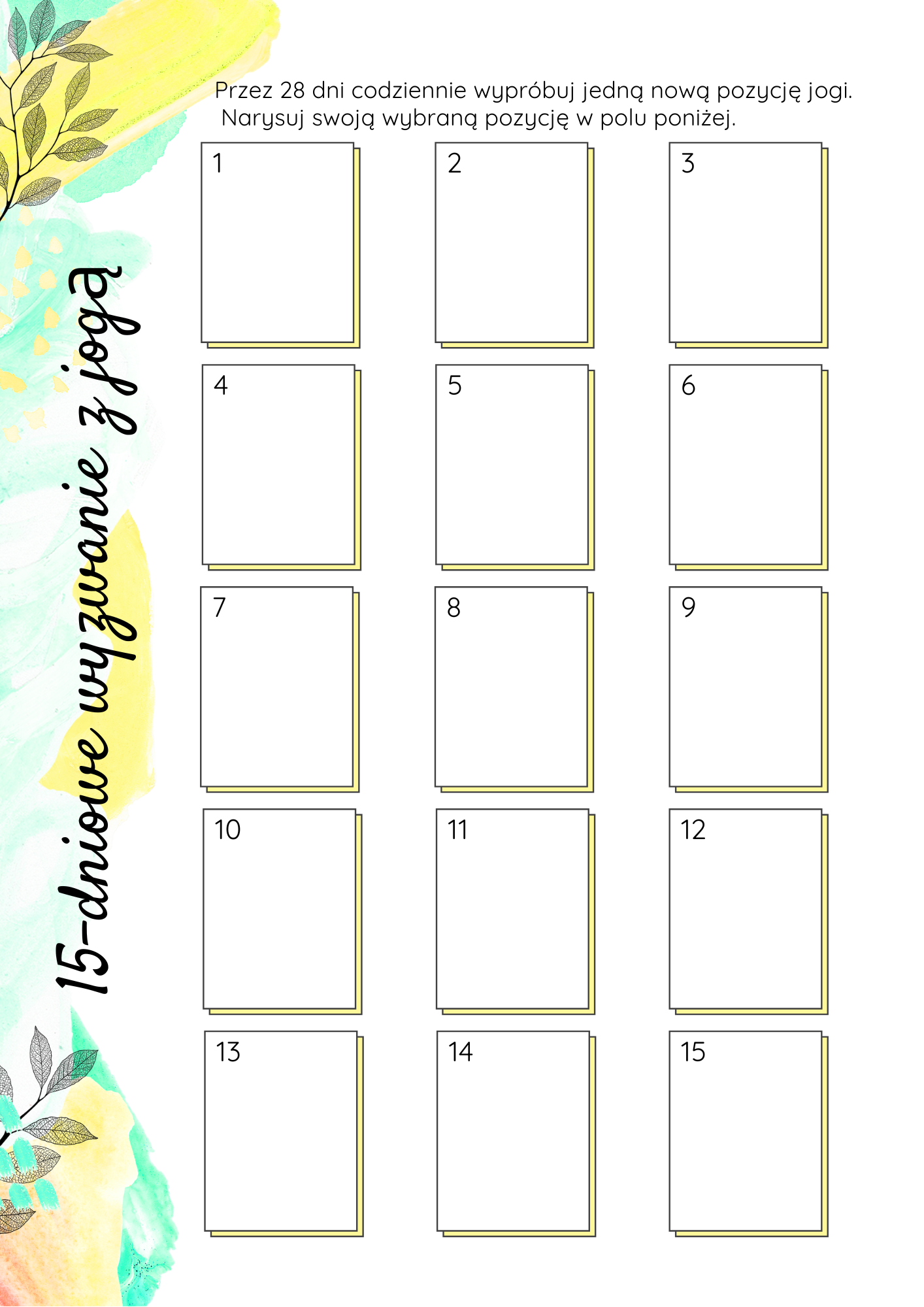 🧘♀️ 28-dniowe wyzwanie jogowe – codziennie nowa pozycja + miejsce na rysunek