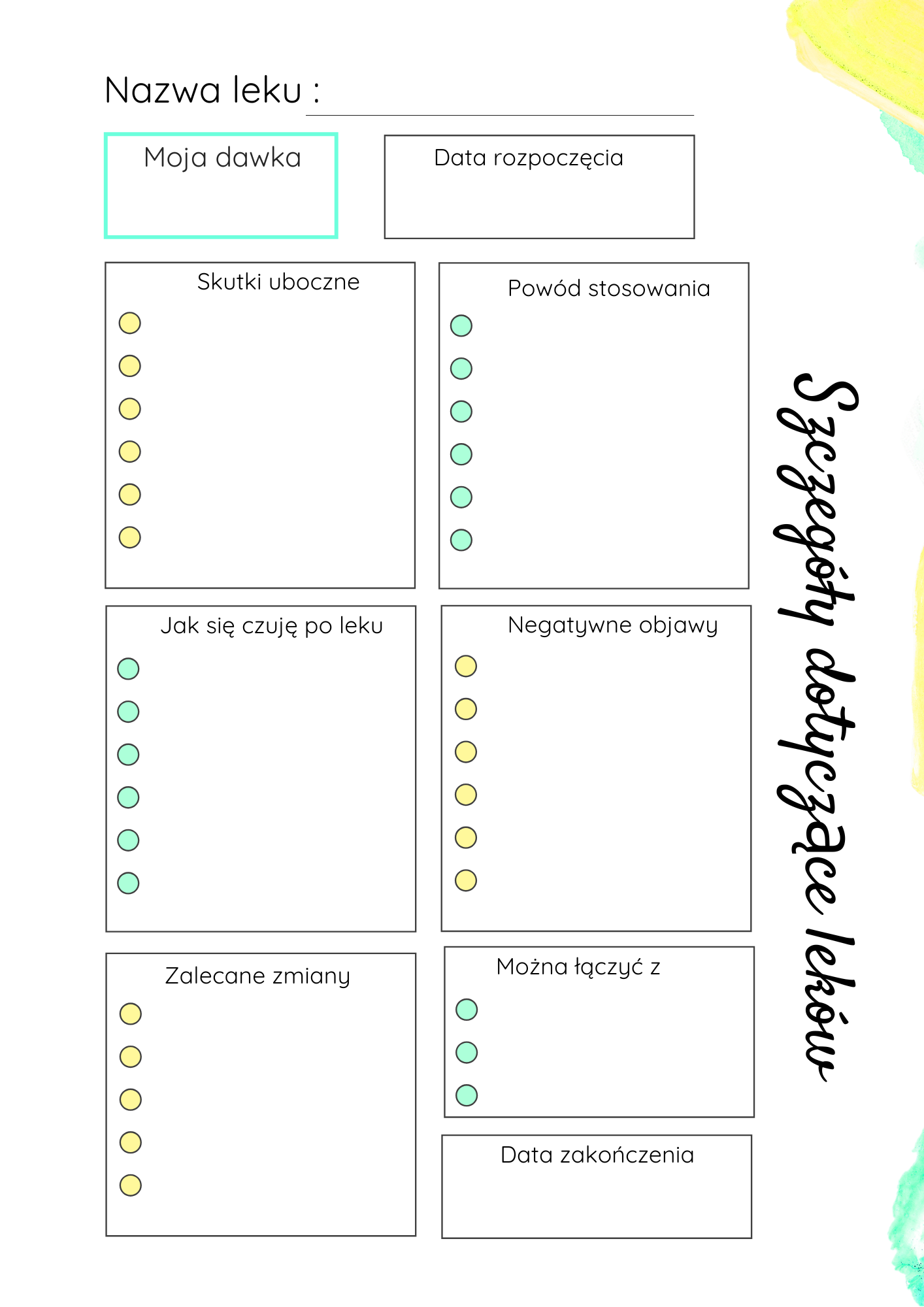 💊 Szczegóły dotyczące leków – dawki, skutki uboczne, obserwacje